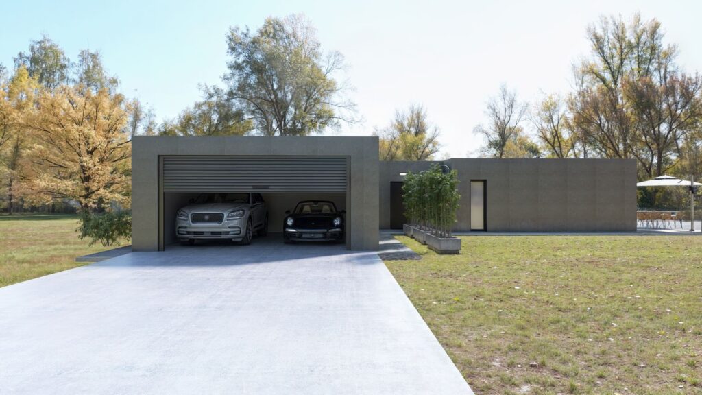 Un garaje independiente se construye como una estructura separada de la casa. Esta opción ofrece la mayor flexibilidad en cuanto a ubicación y diseño, ya que no está limitado por la estructura o la cimentación de la casa prefabricada. Es una excelente opción si tienes suficiente espacio en tu parcela y prefieres mantener los ruidos, olores (como los de la gasolina o los gases de escape) y la suciedad del garaje completamente separados del espacio habitable. El acceso es menos directo, pero la construcción puede ser más sencilla al no tener que interactuar directamente con la estructura existente.